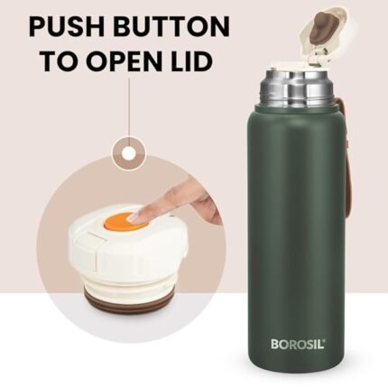 The Borosil Hydra Cruise Stainless Steel 900 ml Water Bottle is a double-wall vacuum insulated bottle designed to keep beverages hot for 17 hours and cold for 20 hours. With a leakproof, BPA-free design and durable stainless steel body, it’s perfect for travel, office, gym, and outdoor use.