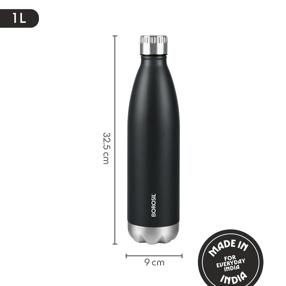 The Bolt Double Wall Bottle, Matte Black is a stylish and durable insulated bottle designed to keep beverages hot or cold for hours. Its sleek matte black finish and leak-proof design make it perfect for daily use, travel, office, or gym.