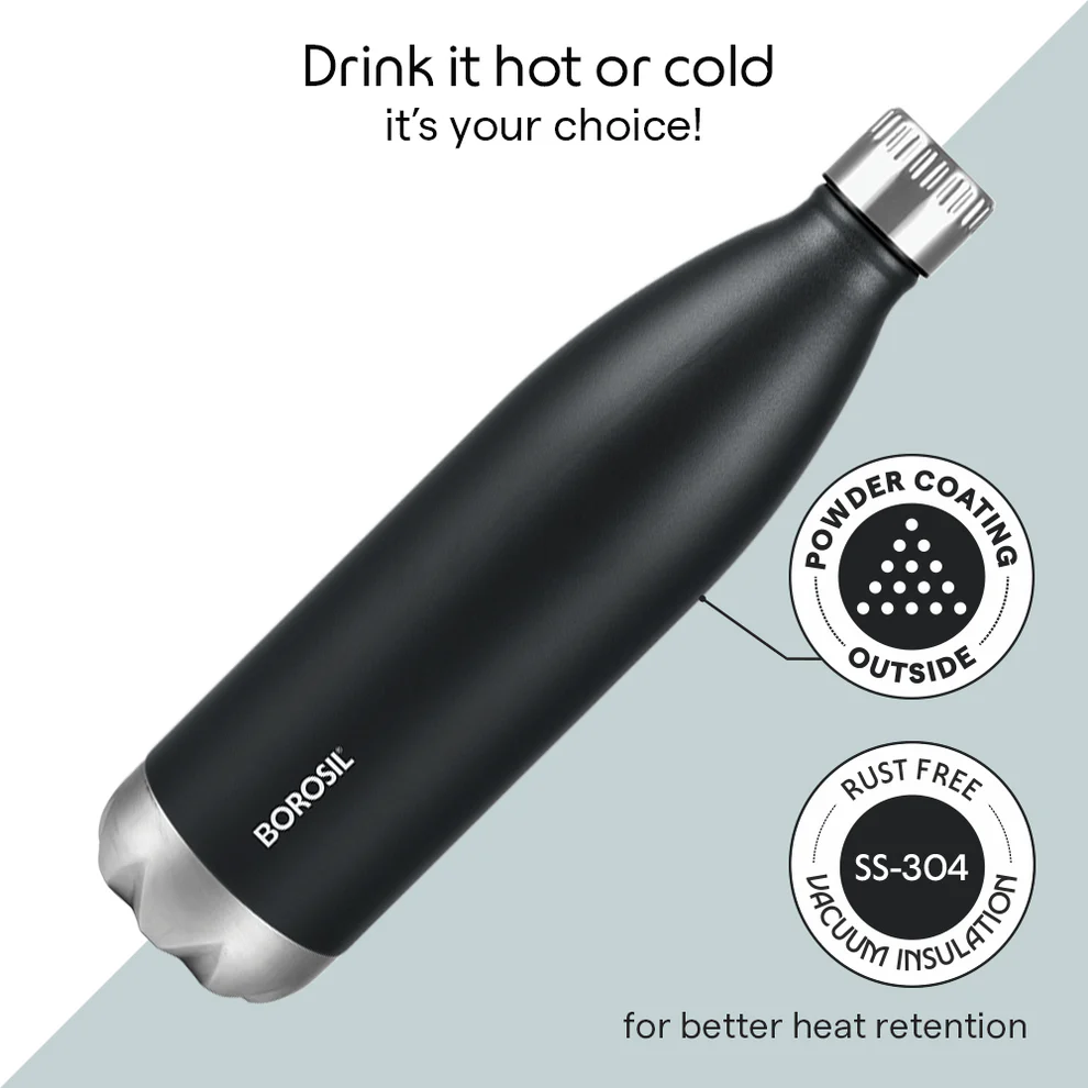 Its durable construction and leak-proof lid ensure safe and convenient carrying, whether you’re heading to the office, gym, travel, or outdoor activities. The elegant matte black finish gives it a premium appearance while maintaining durability for everyday use.