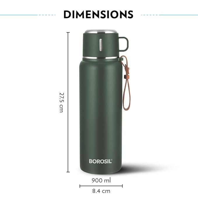 The Borosil Hydra Cruise Stainless Steel 900 ml Water Bottle is a double-wall vacuum insulated bottle designed to keep beverages hot for 17 hours and cold for 20 hours. With a leakproof, BPA-free design and durable stainless steel body, it’s perfect for travel, office, gym, and outdoor use.