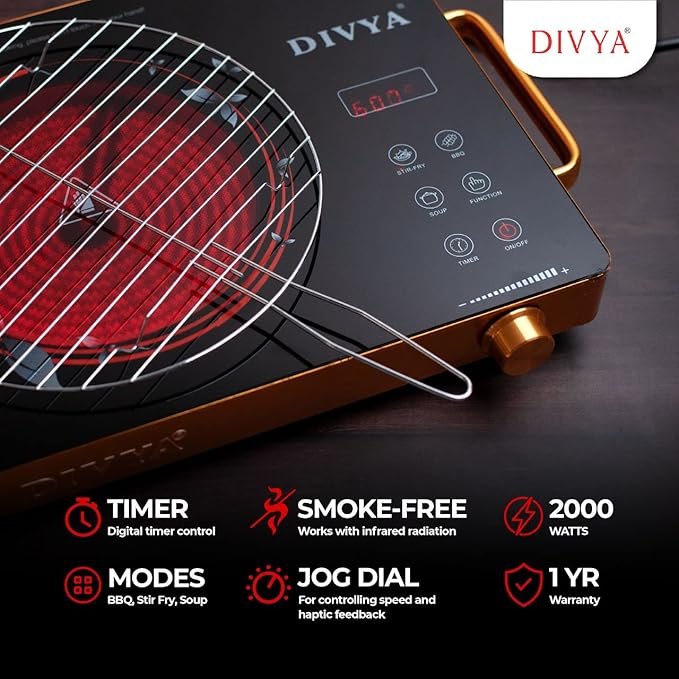 DIVYA DP-88 2000W Premium Infrared Cooktop with Grill – Works with All Utensils