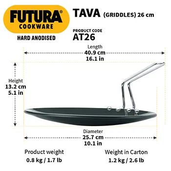 The Hawkins Hard Anodised Tava AT26 is designed to deliver excellent cooking performance and long-lasting durability. Crafted from premium hard anodised aluminium, this tava is built to be strong, corrosion resistant, and highly durable, ensuring it remains in great condition even with regular use.